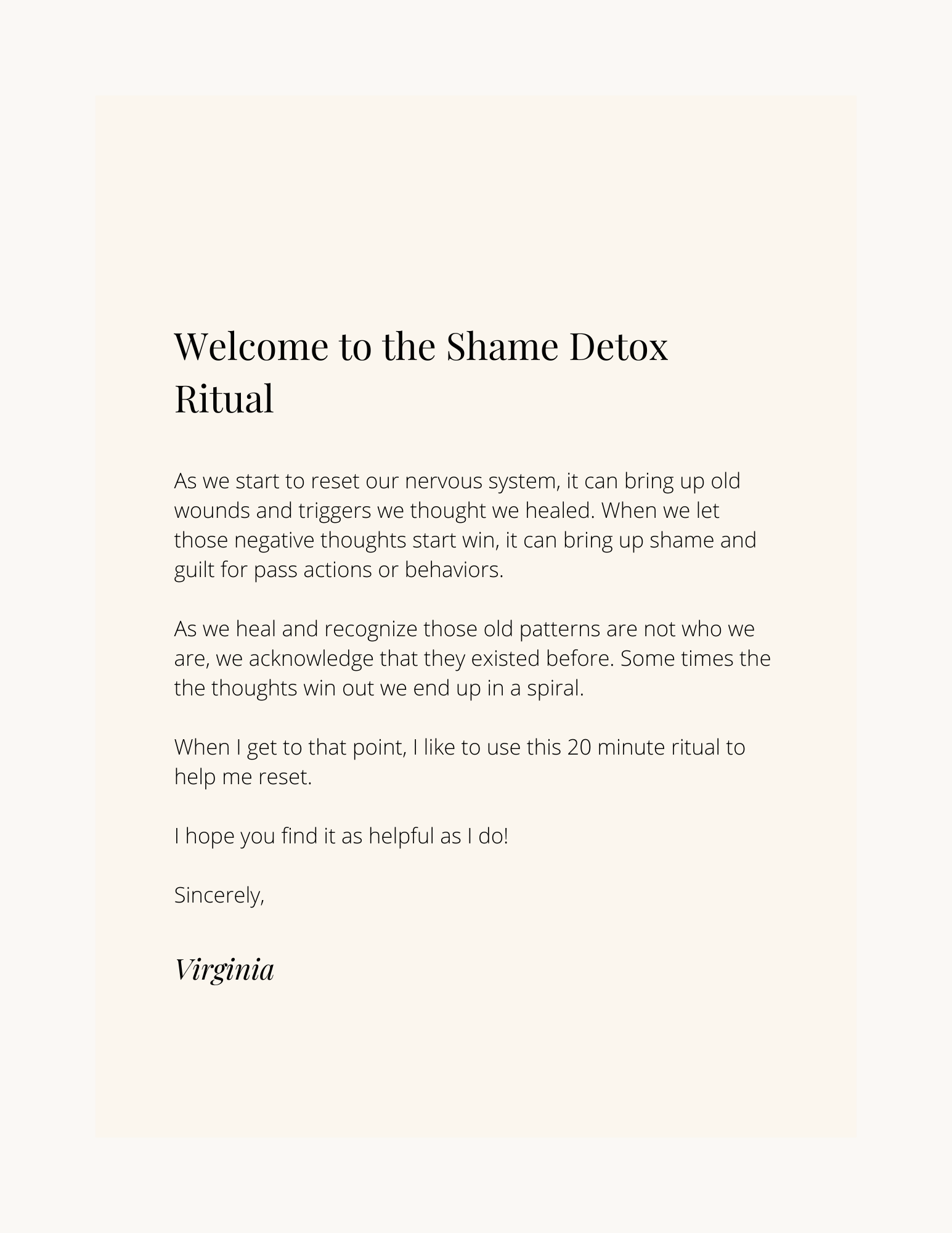 Shame can feel heavy, sticky, and exhausting—and it often shows up when your nervous system is overwhelmed or old patterns resurface. This ritual was created to help you shift out of that spiral gently, without force or pressure.